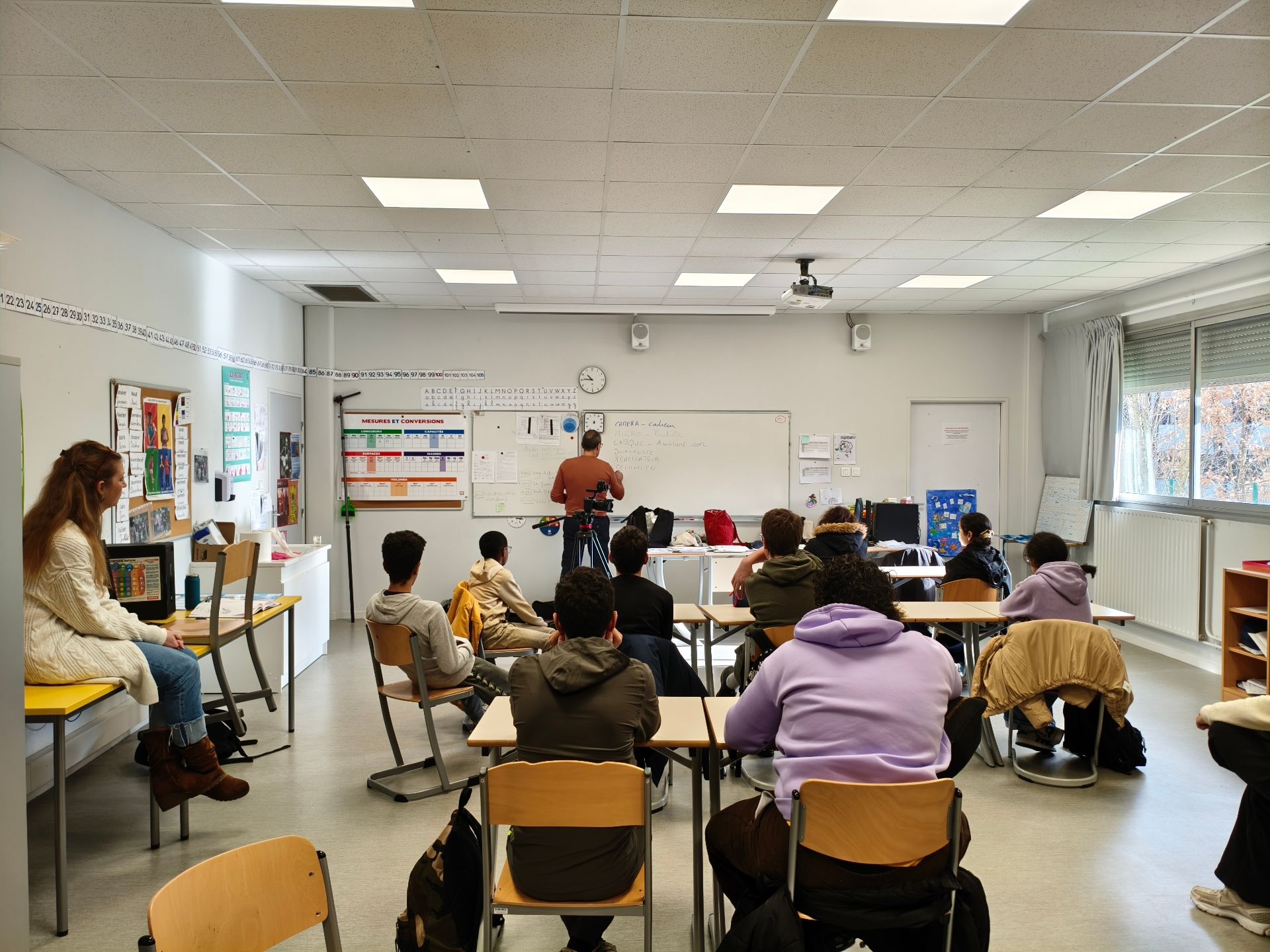Ce vendredi 6 février a eu lieu le lancement du projet " Je filme le métier qui me plaît" avec les élèves du dispoitif Ulis. Ils ont reçu la visite de Louis Salles de l'association J'ouvre l'Oeil et ils ont découvert les différents métiers du cinéma. Ils ont ensuite appris quelques rudiments de tournage d'un film. M. Salles doit venir les rencontrer plusieurs fois dans la salle de Mme Gangloff ou au CDI, afin de les aider à tourner un film. Ce film aura pour objectif de travailler sur les métiers de la restauration et de l'hôtelerie. Pour se faire, ils se rendront au lycée des métiers du tourisme et de l'hôtellerie de Toulouse le lundi 30 mars. Nous aurons la chance de découvrir leur travail en fin d'année scolaire.