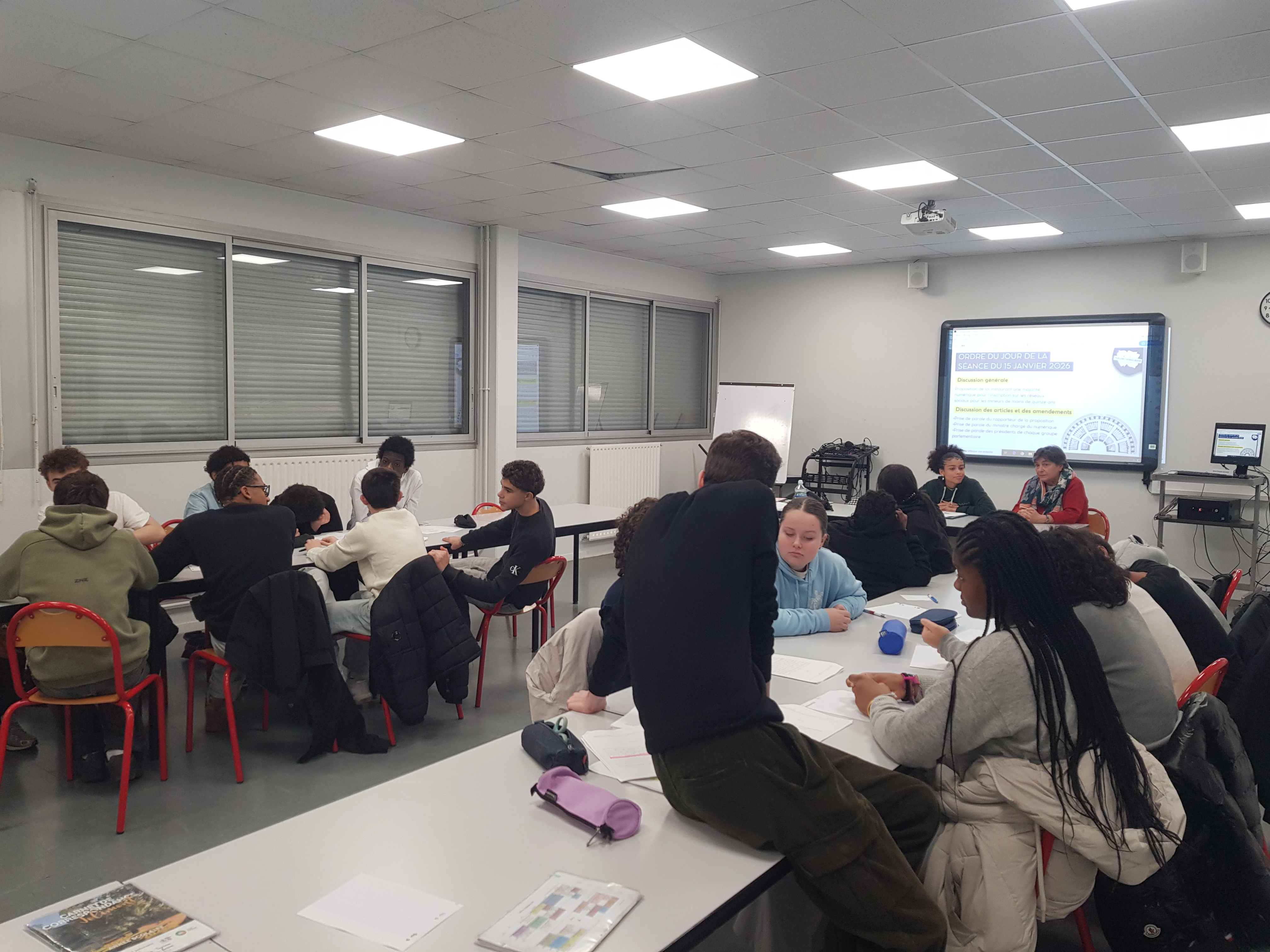 Après une explication sur le parcours de la loi et sur le rôle joué par le Parlement, les élèves se sont lancés sur la simulation d'une séance à l'Assemblée nationale pour l'adoption de la loi sur l'interdiction des réseaux sociaux aux enfants de moins de 15 ans.